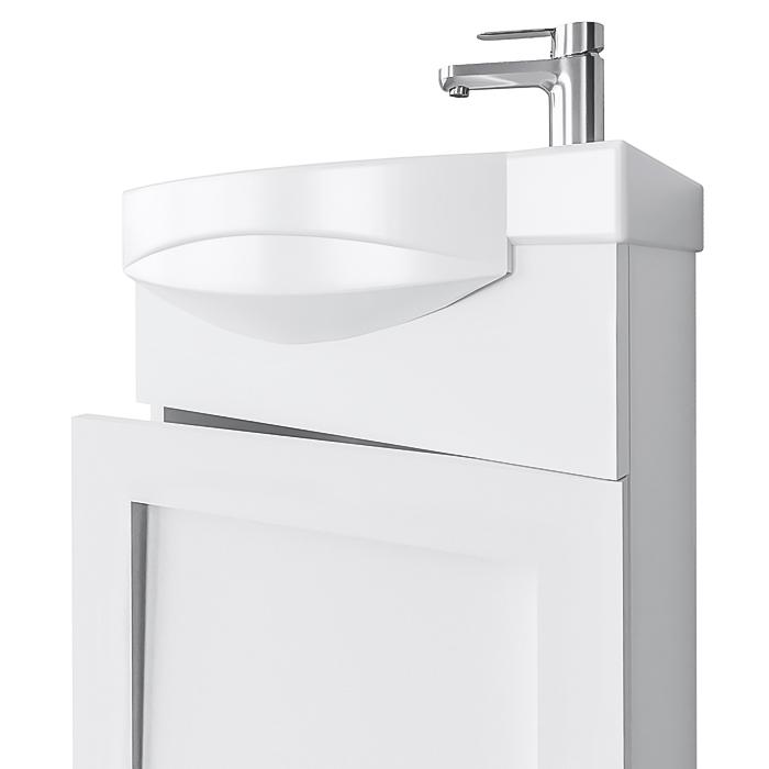 Išskirtinio dizaino vonios kambario spintelė. Neapkrautas rankenėlėmis, dailiai išfrezuotas fasadas kuria stilingo vonios kambario įspūdį. Tobulai subalansuotas spintelės dydis suteikia galimybę ją pakabinti net ir pačioje mažiausioje erdvėje, o minimalistinės formos bei spalvos pasirinkimas leidžia spintelę pritaikyti įvairaus stiliaus interjere. Spintelėje įmontuoti švelniai užsidarantys lankstai, kurių dėka durelės varstomos itin tyliai ir sklandžiai. Šią baldų furnitūrą ne tik malonu naudoti – ji taip pat pasižymi ilgesniu naudojimo laikotarpiu, lyginant su įprasta furnitūra. Tai ypač svarbu, nes vonios baldai yra intensyviai eksploatuojami, todėl privalo būti patvarūs. Spintelėje rasite reguliuojamo aukščio lentynėlę, kuri gali padėti patogiai susidėti įvairių dydžių vonios reikmenis ir jų pakuotes. Baldas padengtas poliuretaniniais dažais, kurių dėka nudažyti paviršiai yra nepriekaištingai lygūs, lengvai valomi, atsparūs drėgmei, o spalva ilgai išlieka nepakitusi.
