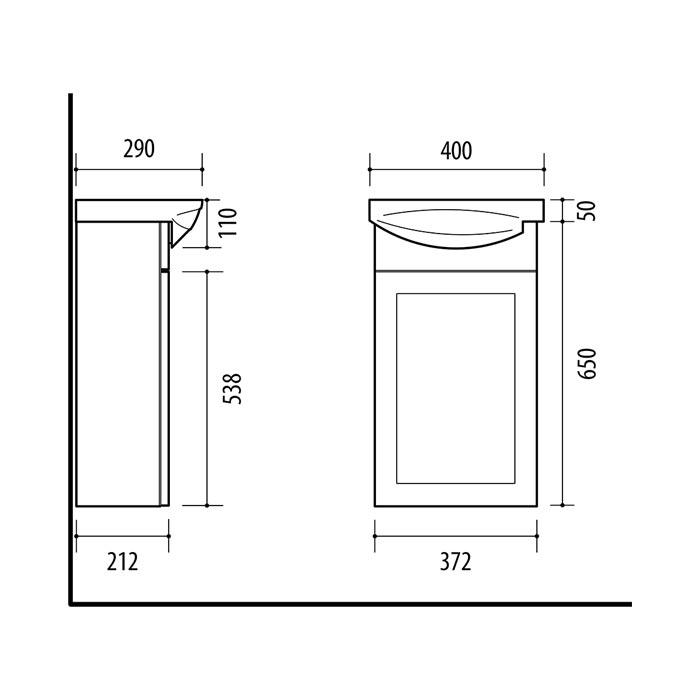 372 x 650 x 212 mm (plotis, aukštis, gylis)