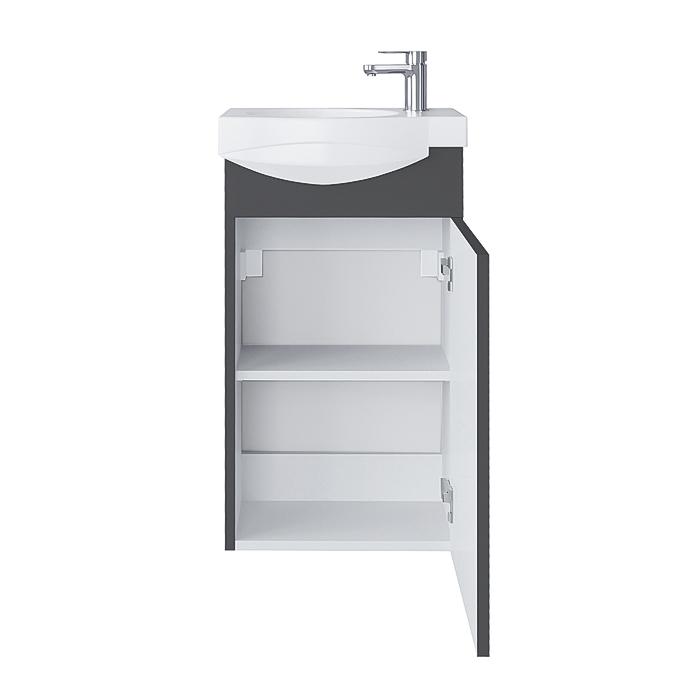Išskirtinio dizaino vonios kambario spintelė. Neapkrautas rankenėlėmis, dailiai išfrezuotas fasadas kuria stilingo vonios kambario įspūdį. Tobulai subalansuotas spintelės dydis suteikia galimybę ją pakabinti net ir pačioje mažiausioje erdvėje, o minimalistinės formos bei spalvos pasirinkimas leidžia spintelę pritaikyti įvairaus stiliaus interjere. Spintelėje įmontuoti švelniai užsidarantys lankstai, kurių dėka durelės varstomos itin tyliai ir sklandžiai. Šią baldų furnitūrą ne tik malonu naudoti – ji taip pat pasižymi ilgesniu naudojimo laikotarpiu, lyginant su įprasta furnitūra. Tai ypač svarbu, nes vonios baldai yra intensyviai eksploatuojami, todėl privalo būti patvarūs. Spintelėje rasite reguliuojamo aukščio lentynėlę, kuri gali padėti patogiai susidėti įvairių dydžių vonios reikmenis ir jų pakuotes. Baldas padengtas poliuretaniniais dažais, kurių dėka nudažyti paviršiai yra nepriekaištingai lygūs, lengvai valomi, atsparūs drėgmei, o spalva ilgai išlieka nepakitusi.