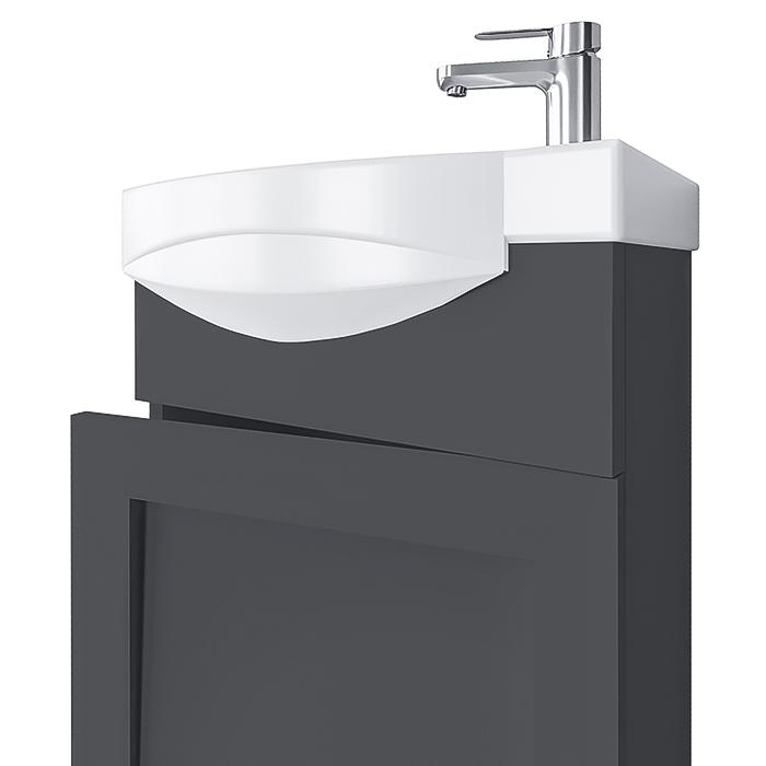 Spintelė komplektuojama su kompaktišku keraminiu praustuvu, kuriuo itin patogu naudotis dėl talpaus dubens. Lygus paviršius ir aptakios linijos užtikrina paprastą jo valymą. Praustuvas pasižymi ilgaamžiškumu, atsparumu korozijai, karščiui ir dilimui. Be to, glazūros sudėtyje nėra sveikatai kenkiančio švino.