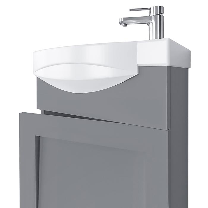 Spintelė komplektuojama su kompaktišku keraminiu praustuvu, kuriuo itin patogu naudotis dėl talpaus dubens. Lygus paviršius ir aptakios linijos užtikrina paprastą jo valymą. Praustuvas pasižymi ilgaamžiškumu, atsparumu korozijai, karščiui ir dilimui. Be to, glazūros sudėtyje nėra sveikatai kenkiančio švino.