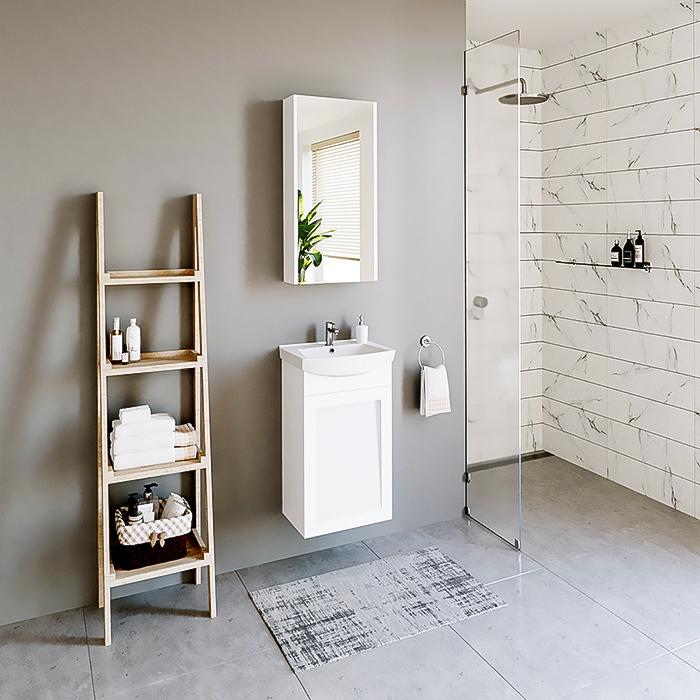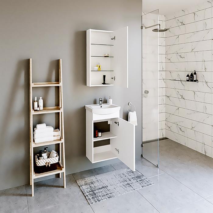 Spalva: Balta – gaivos ir švaros spalva, puikiai tinkanti vonios kambariui. Šios spintelės spalva – balta matinė (30% blizgumo).