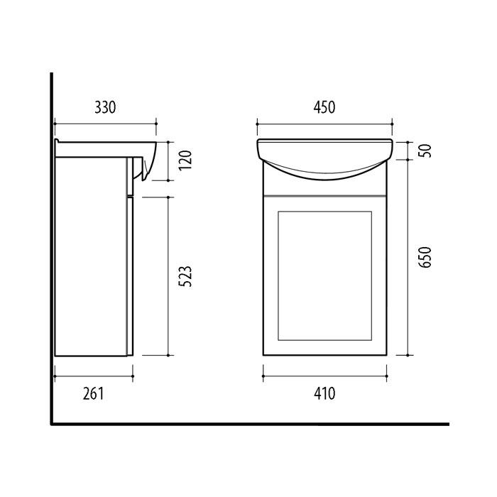 Pakabinama vonios spintelė su durelėm. Spintelė parduodama kartu su praustuvu RIVA45. Sifonas ir vandens maišytuvas į komplektaciją neįeina.
