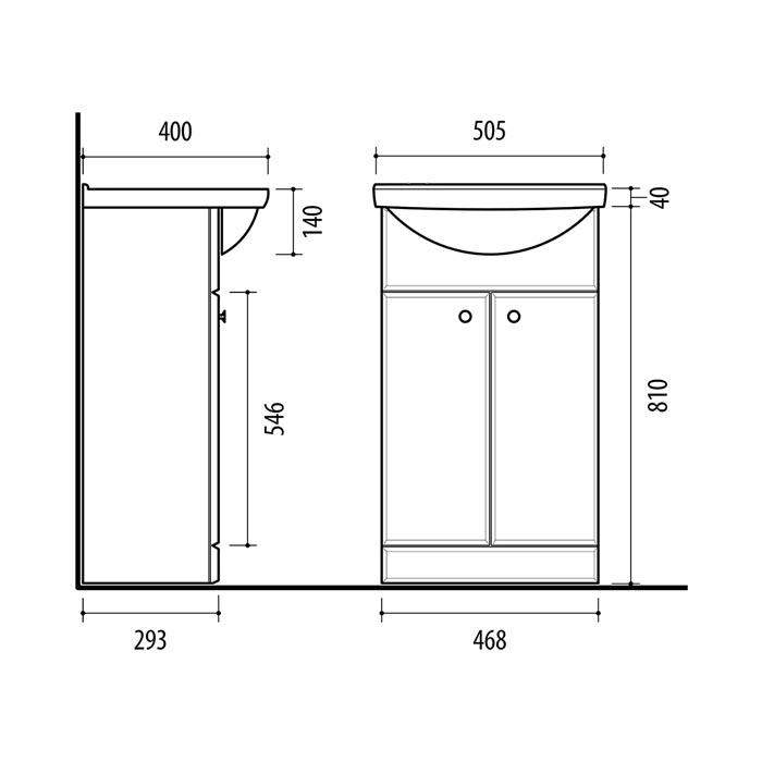 Pastatoma vonios spintelė su dviem durelėm. Spintelė parduodama kartu su praustuvu RIVA50A. Sifonas ir vandens maišytuvas į komplektaciją neįeina.