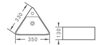 Iš kampinės kraštinės yra 43 cm, o ilgoji priekinė kraštinė 57 cm.
