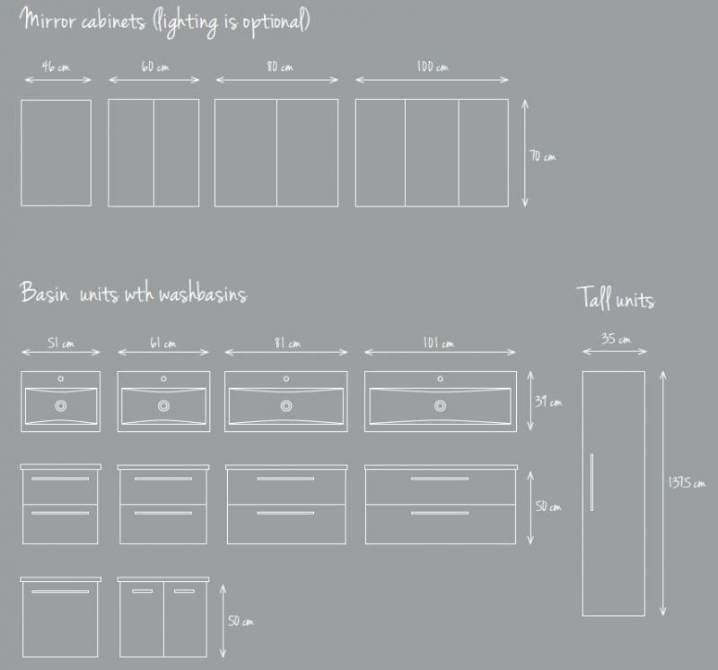LED šviestuvas (matinės pilkos spalvos, (36 cm - 60 ir 70 cm pločio komplektams, 58 cm - 90 ir 110 cm pločio komplektams), IP44, 4000K, jungiklis + rozetė.