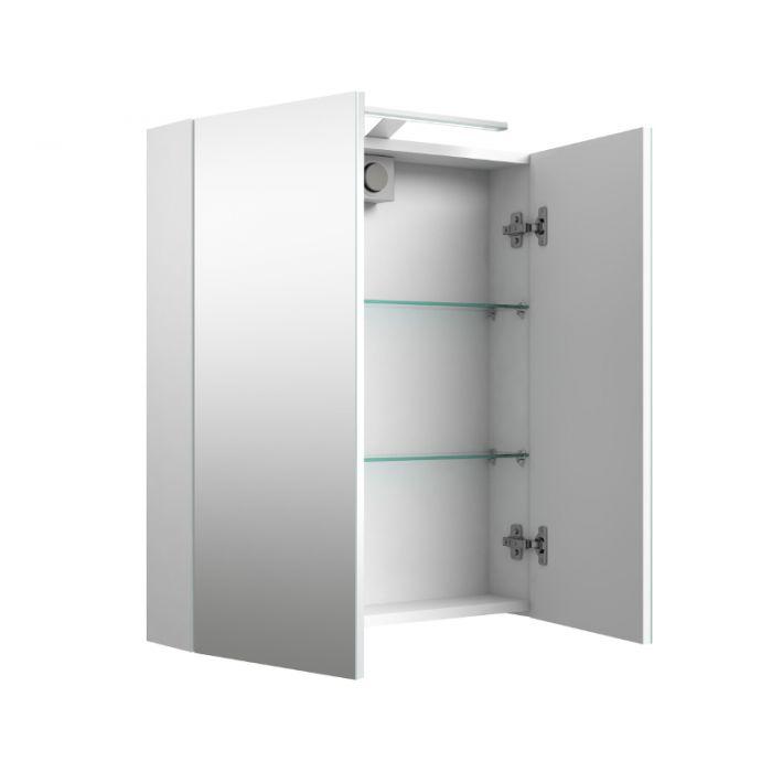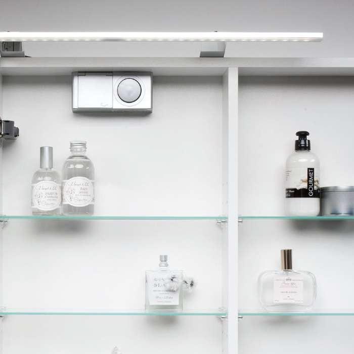 LED šviestuvas (matinės pilkos spalvos, (36 cm - 60 ir 70 cm pločio komplektams, 58 cm - 90 ir 110 cm pločio komplektams), IP44, 4000K, jungiklis + rozetė.