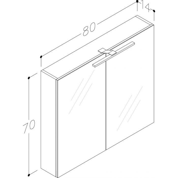 LED šviestuvas (matinės pilkos spalvos, (36 cm - 60 ir 70 cm pločio komplektams, 58 cm - 90 ir 110 cm pločio komplektams), IP44, 4000K, jungiklis + rozetė.