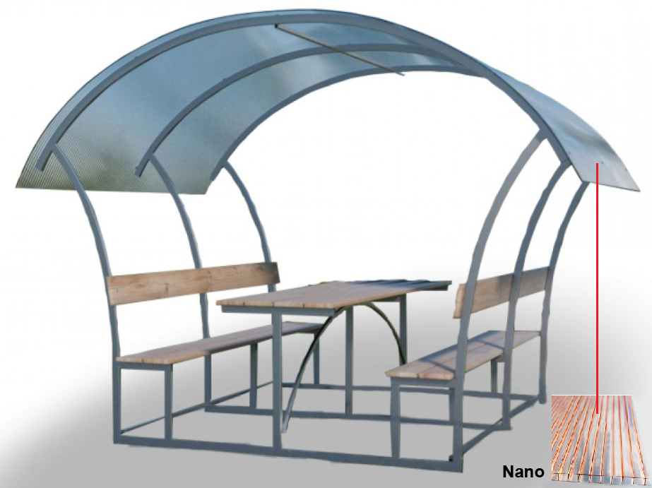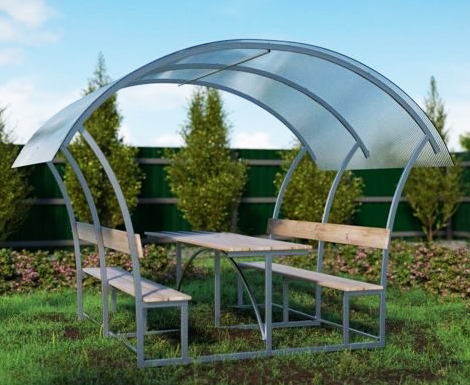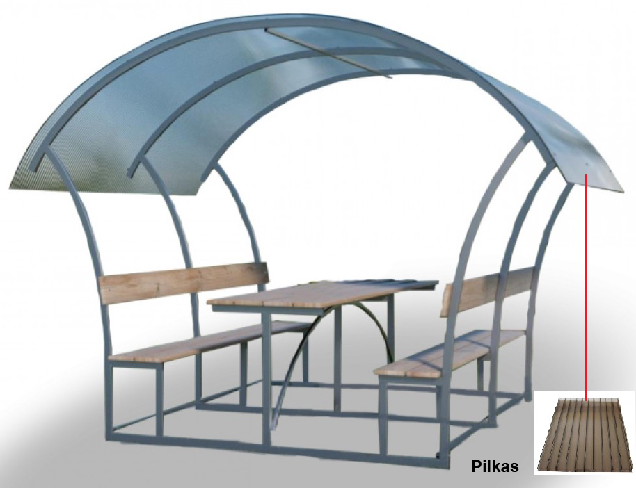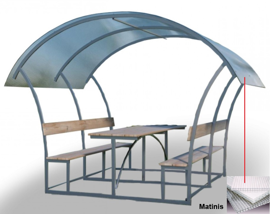 Pavėsinė padengiama polikarbonatine danga.
