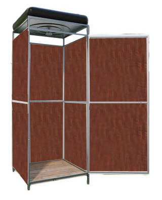 Dušo kabina yra skirta vandens procedūroms vasarą sodo sklypuose.