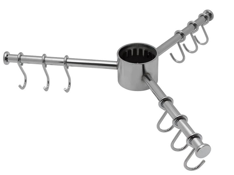 Triguba pakaba su centriniu perėjimo laikikliu, skirta montuoti ant 50 mm skersmens vamzdžio. Naudojamas kaip rankšluosčių, puodų laikiklių, prijuosčių ir kitų smulkmenų laikiklis.