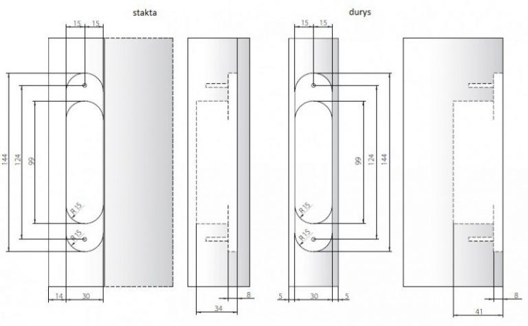 Staktos pusėje galima atitraukti 14mm nuo krašto.