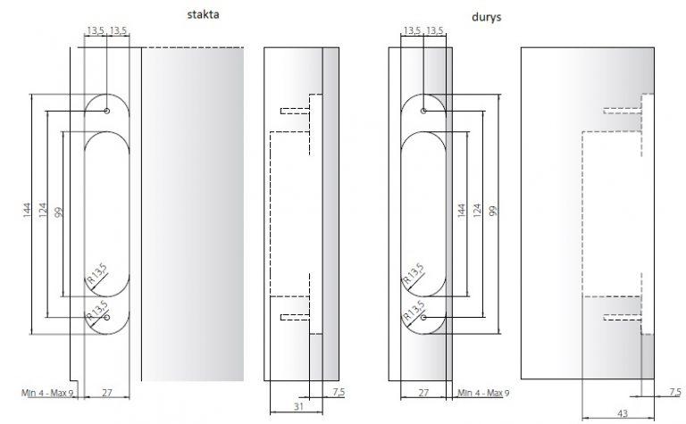 Durys gali būti varstomos 180 laipsnių kampu. Universalūs, nekryptiniai.