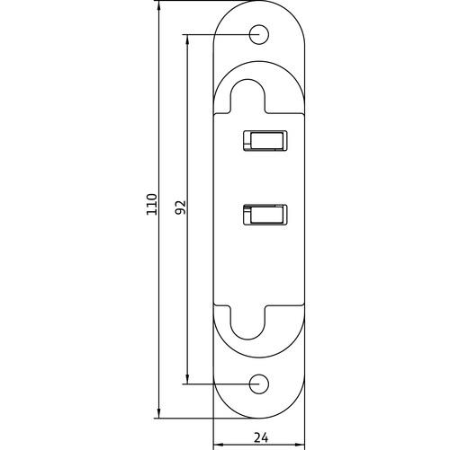 Vyrio aukštis 110mm, plotis 24mm. Vyriai reguliuojami trimis kryptimis (nepriklausomai viena nuo kitos).
