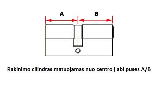 Suktuko/rankenėlės pusę žymi R raidė prie kiekvieno matmens.