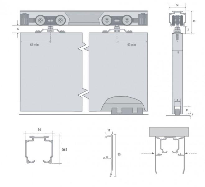 Stumdomų durų sistema "DUCASSE DN50 CF E" skirta medinėms vidaus stumdomosioms durims.