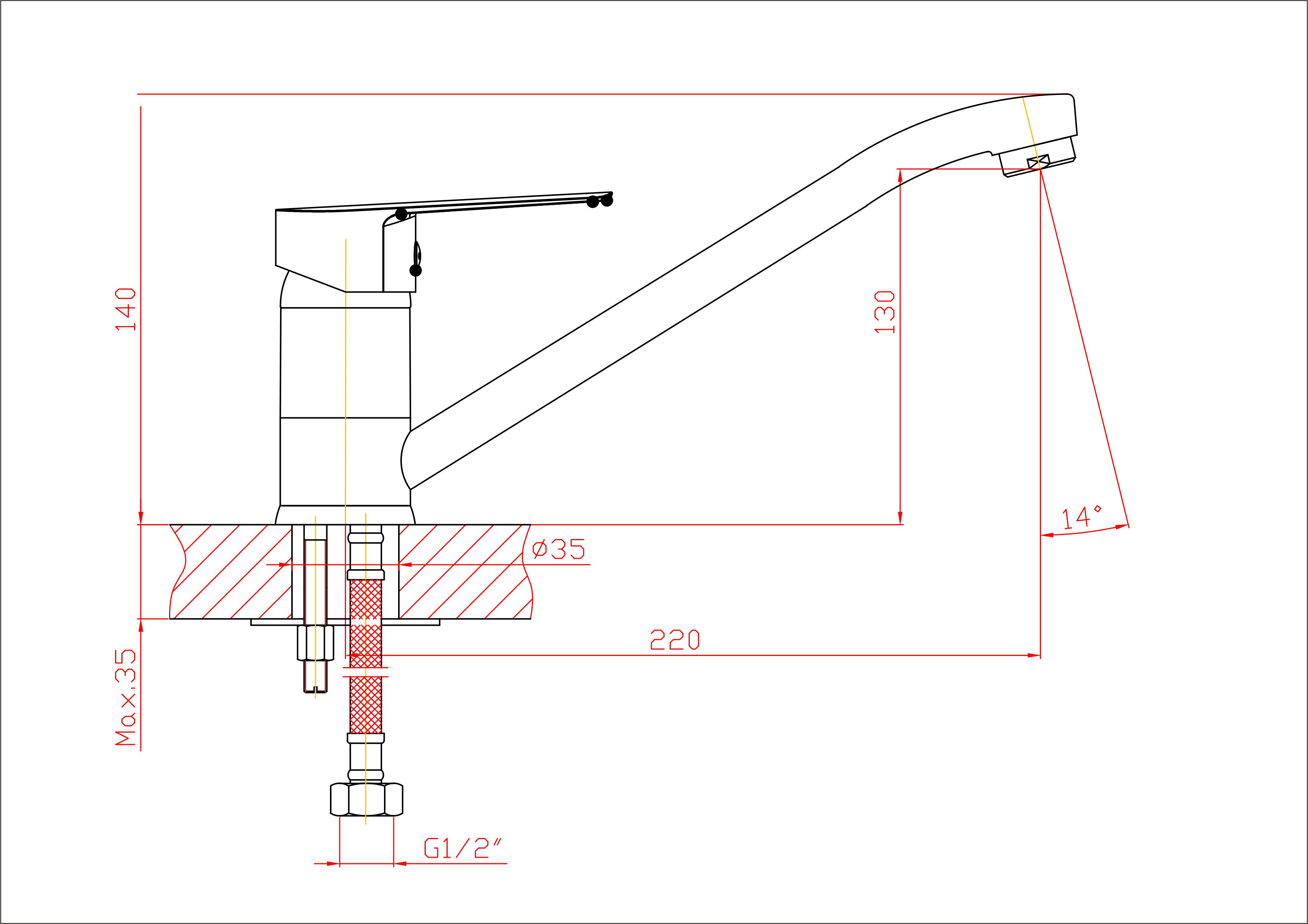 Vienos svirties maišytuvas plautuvei ilgu snapu (snapo ilgis 22 cm).