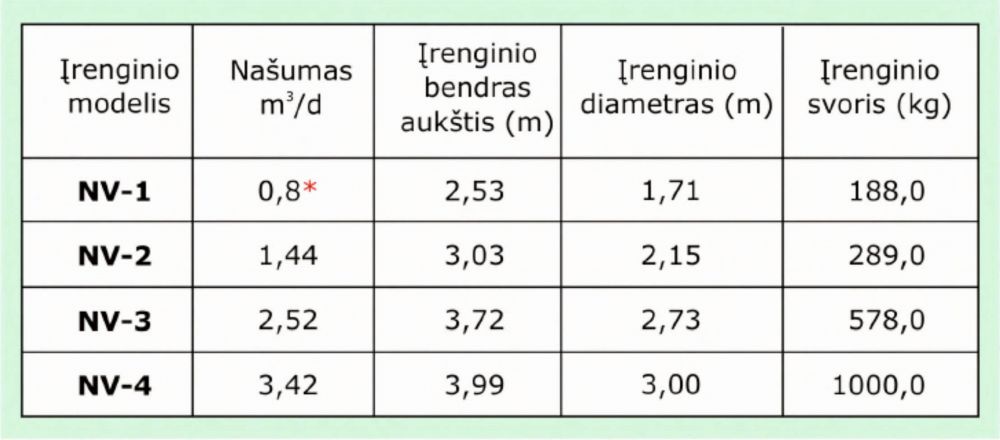 NV tipo buitinių nuotekų biologinio valymo įrenginiai yra skirti buitinių arba joms artimų nuotekų iš virtuvės, vonios, tualetų, bei kitų panašios paskirties patalpų, valymui.