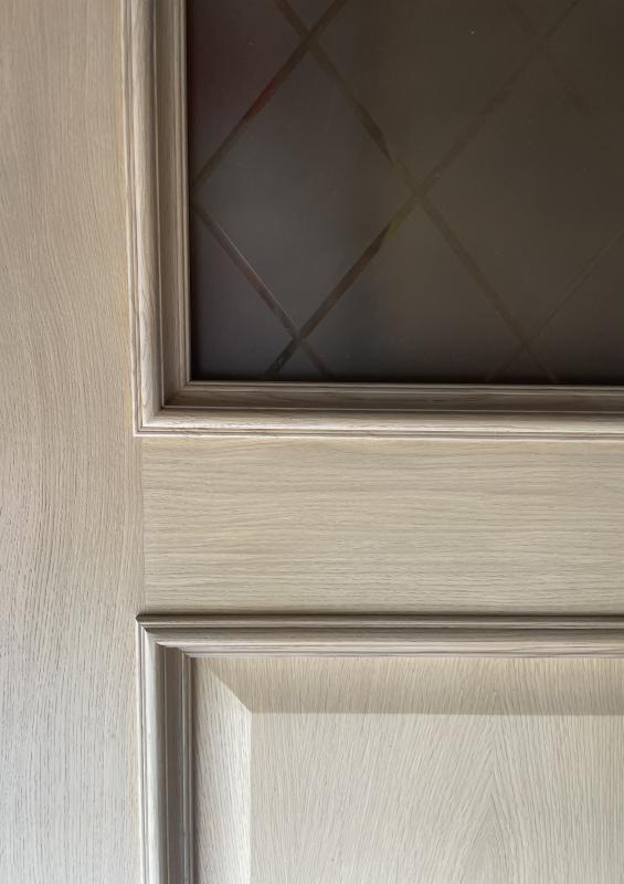 Durų varčios karkasas sutvirtintas iš medžio masyvo. Stiklas - matinis.