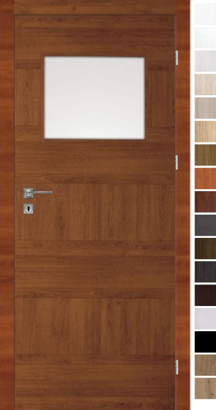 Durų varčios rėmas pagamintas iš spygliuočių medienos, užpildas vamzdinė medžio drožlių plokštė. Rėmas su užpildu iš abiejų pusių padengtas HDF plokšte. Stiklas - matinis.