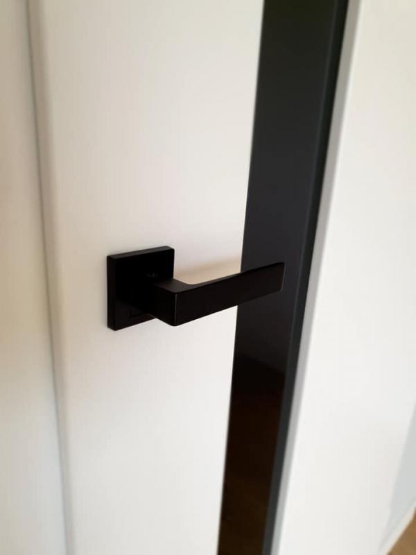 Durų varčios rėmas pagamintas iš aukštos kokybės medienos pagrindo plokštės ir papildomai sutvirtintas fanera. Užpildas - vamzdinė medžio drožlių plokštė. Stiklas - juodas, 8 mm storio.