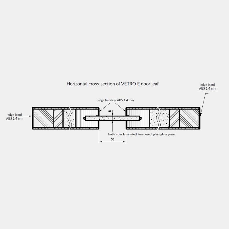 Durų varčios karkasas pagamintas iš patvarios MDF plokštės, sutvirtintos fanera, užpildas - perforuota medžio drožlių plokštė. Stiklas Juodas grūdintas laminuotas, 8 cm pločio.