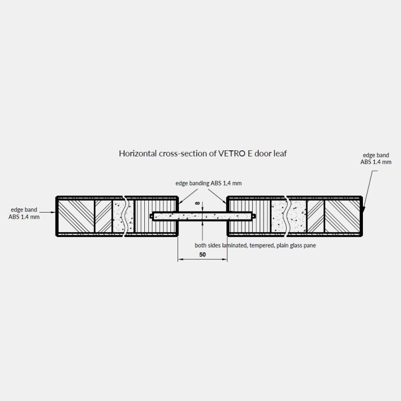 Durų varčios karkasas pagamintas iš patvarios MDF plokštės, sutvirtintos fanera, užpildas - perforuota medžio drožlių plokštė. Stiklas Matinis grūdintas laminuotas, 8 cm pločio.