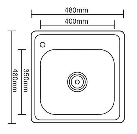 Įleidžiama plautuvė su skyle maišytuvui kairiajame kampe.