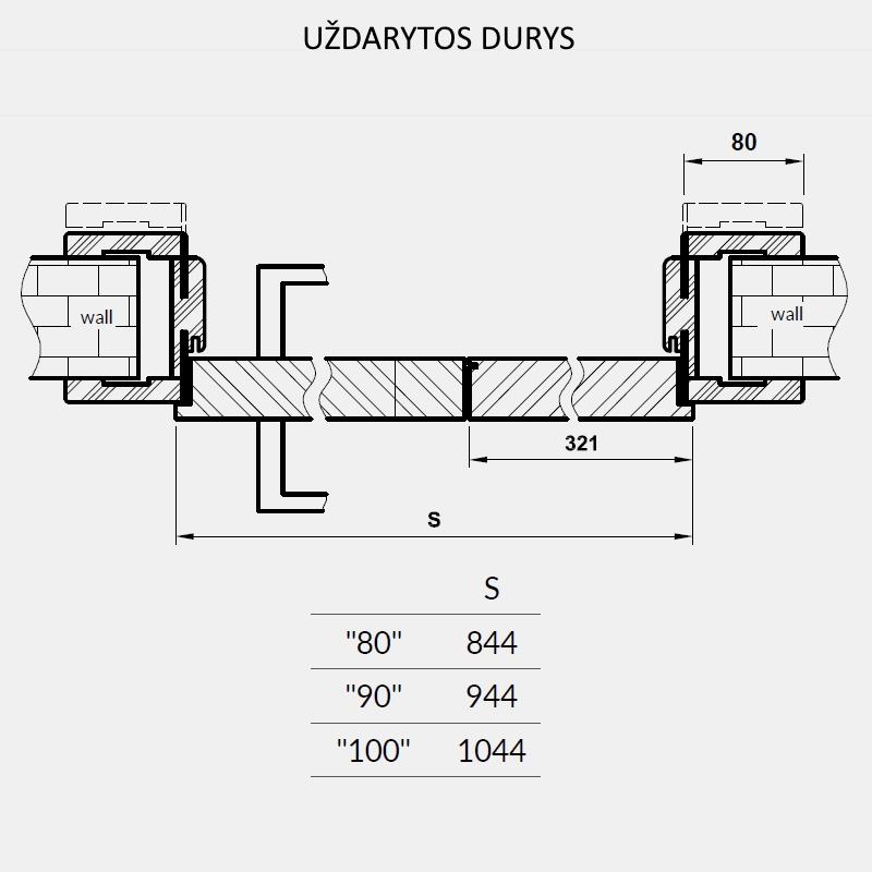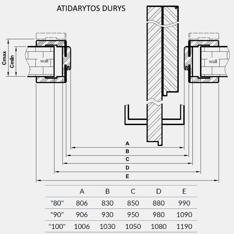 Reguliuojama stakta komplektuojama su abiejų pusių apvadais, pasirenkamas staktos plotis pagal sienos storį, gali būti naudojama sienoms, kurių storis 95-300 mm.