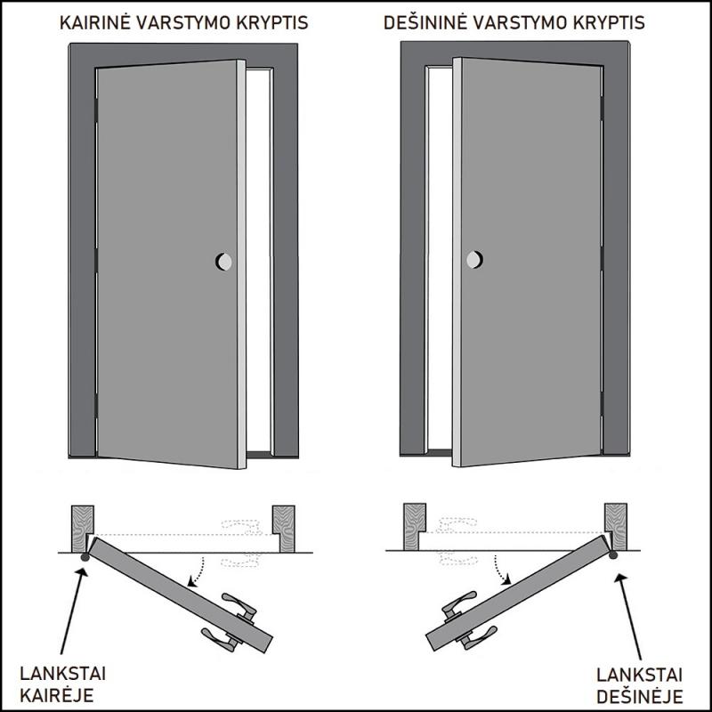 VARSTYMO KRYPTIS: Pasirenkama "kairiniam", arba "dešininiam" varstymui.