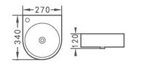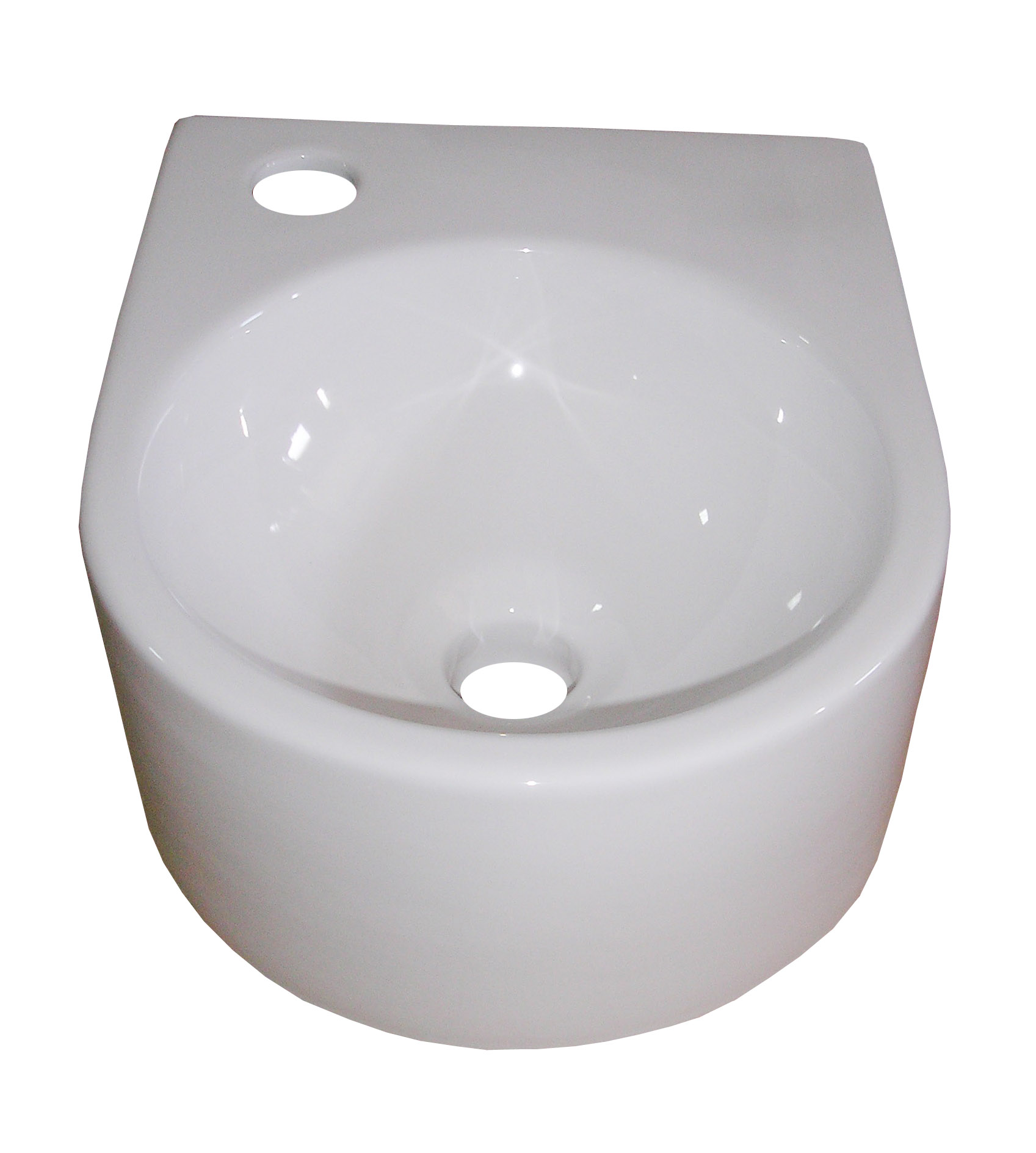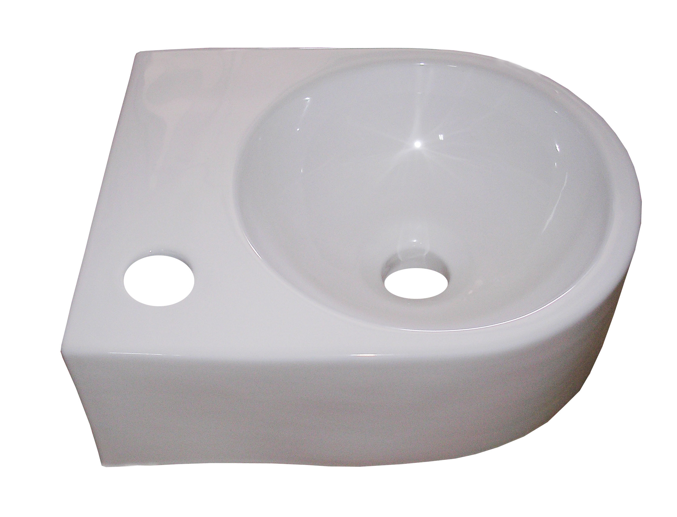 Pakabinamas keramikinis praustuvas su skyle maišytuvui.