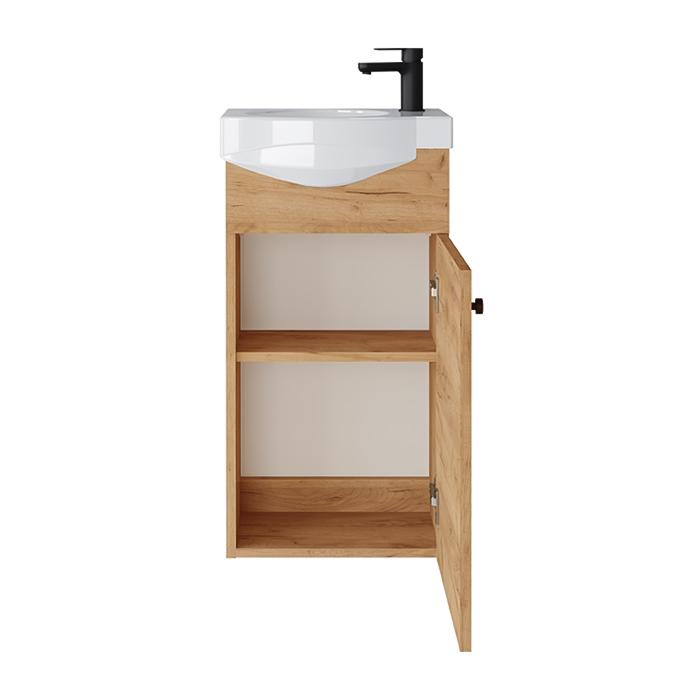 Vonios spintelės dekoras – Gold Craft Oak – tai autentiškai atrodantis auksinio atspalvio ąžuolas, kupinas charakterio ir natūralių netobulumų.
