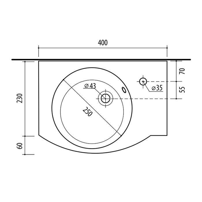 Išskirtinės formos keraminis praustuvas su persipylimo kanalėliu