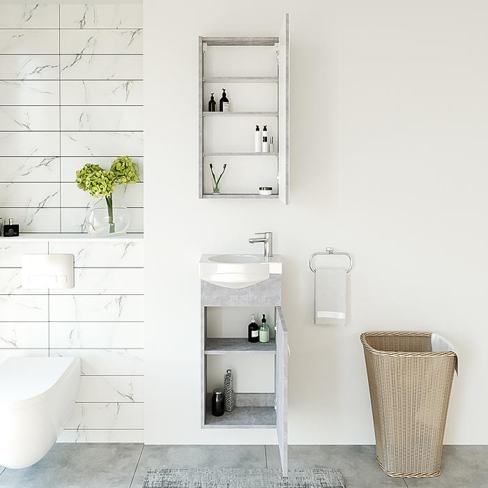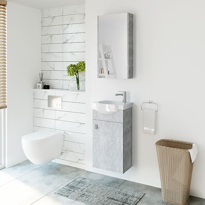 Komplektas: Spintelė su praustuvu ir veidrodinė spintelė