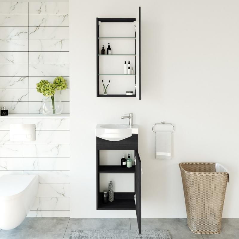 Komplektas: Spintelė su praustuvu ir veidrodinė spintelė