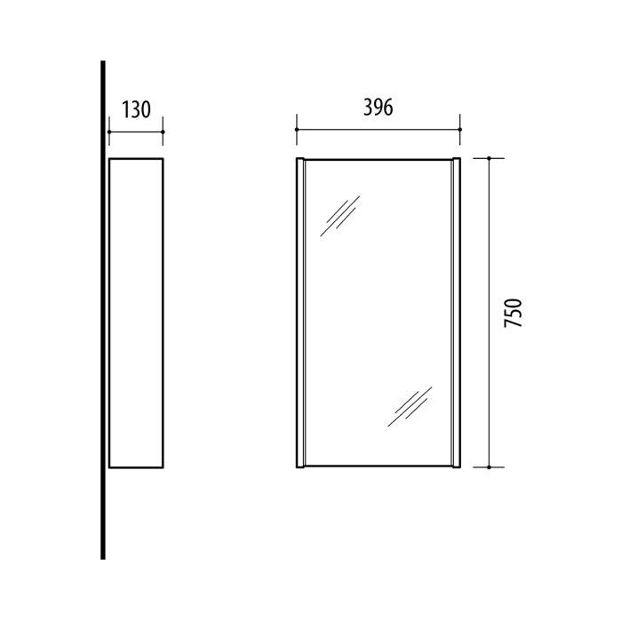 396 x 750 x 130 mm (plotis, aukštis, gylis)