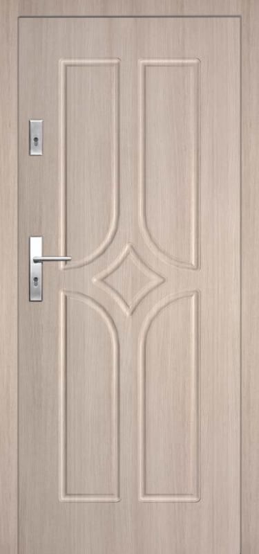 Durų varčios rėmas pagamintas iš MDF, papildomai sustiprintas dviem plieno lakštais. Išorinė HDF plokštė padengta laminatu.