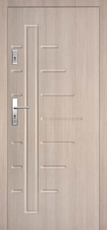 Durų varčios rėmas pagamintas iš MDF, papildomai sustiprintas dviem plieno lakštais. Išorinė HDF plokštė padengta laminatu.