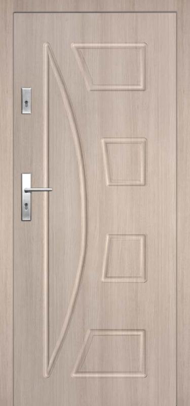 Durų varčios rėmas pagamintas iš MDF, papildomai sustiprintas dviem plieno lakštais. Išorinė HDF plokštė padengta laminatu.