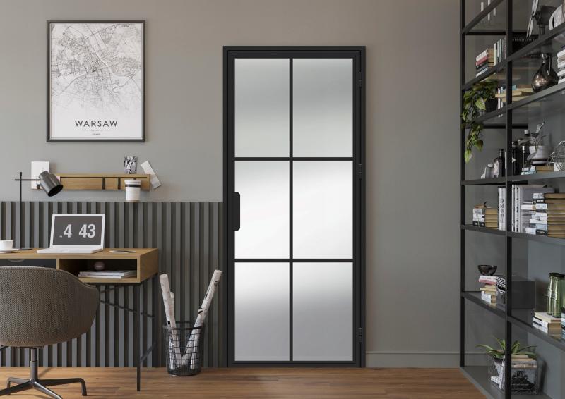 Vidaus durys "GALIO" skirtos kambariams viešuosiuose pastatuose, pvz., biuruose ir butuose.Vidaus durys gaminamos pagal standartą PN-EN 14351-2:2018.