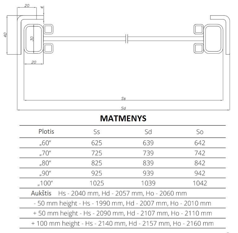 *Galima pagaminti nestandartinių matmenų duris. Maksimalus durų aukštis - 2157 mm.