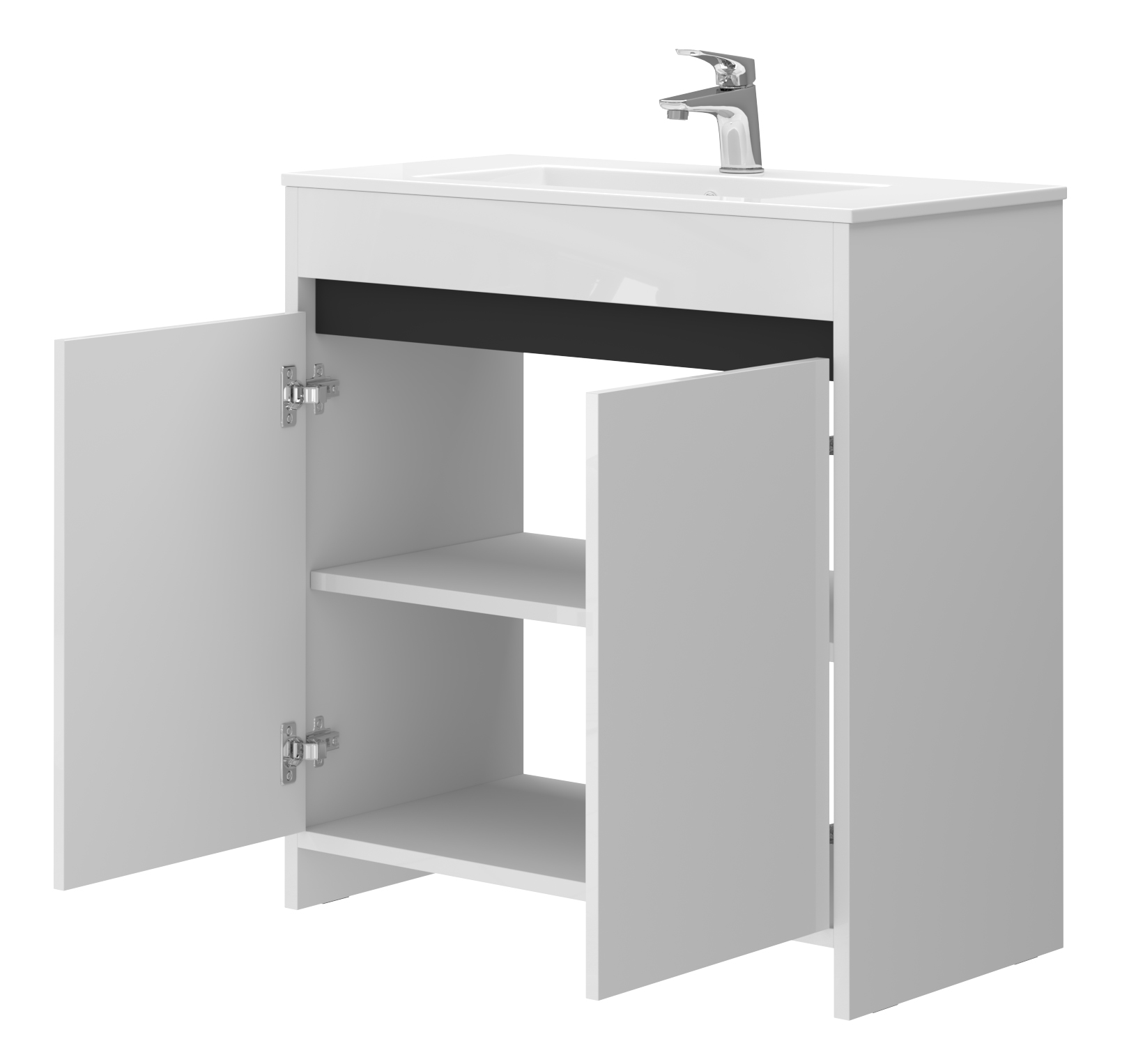 Gaminys turi dvi duris. Vidinę erdvę už durų skaido viena lentyna iš 16 mm storio baltos spalvos laminuotos medžio drožlių plokštės.