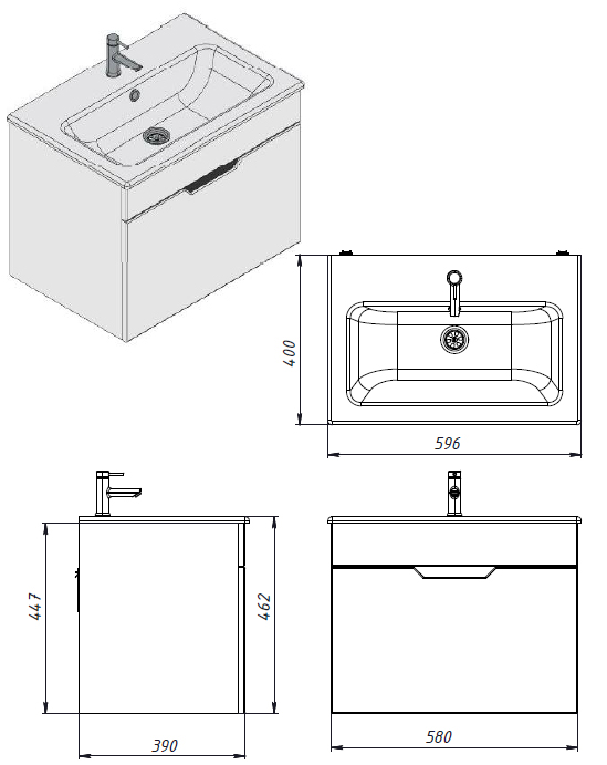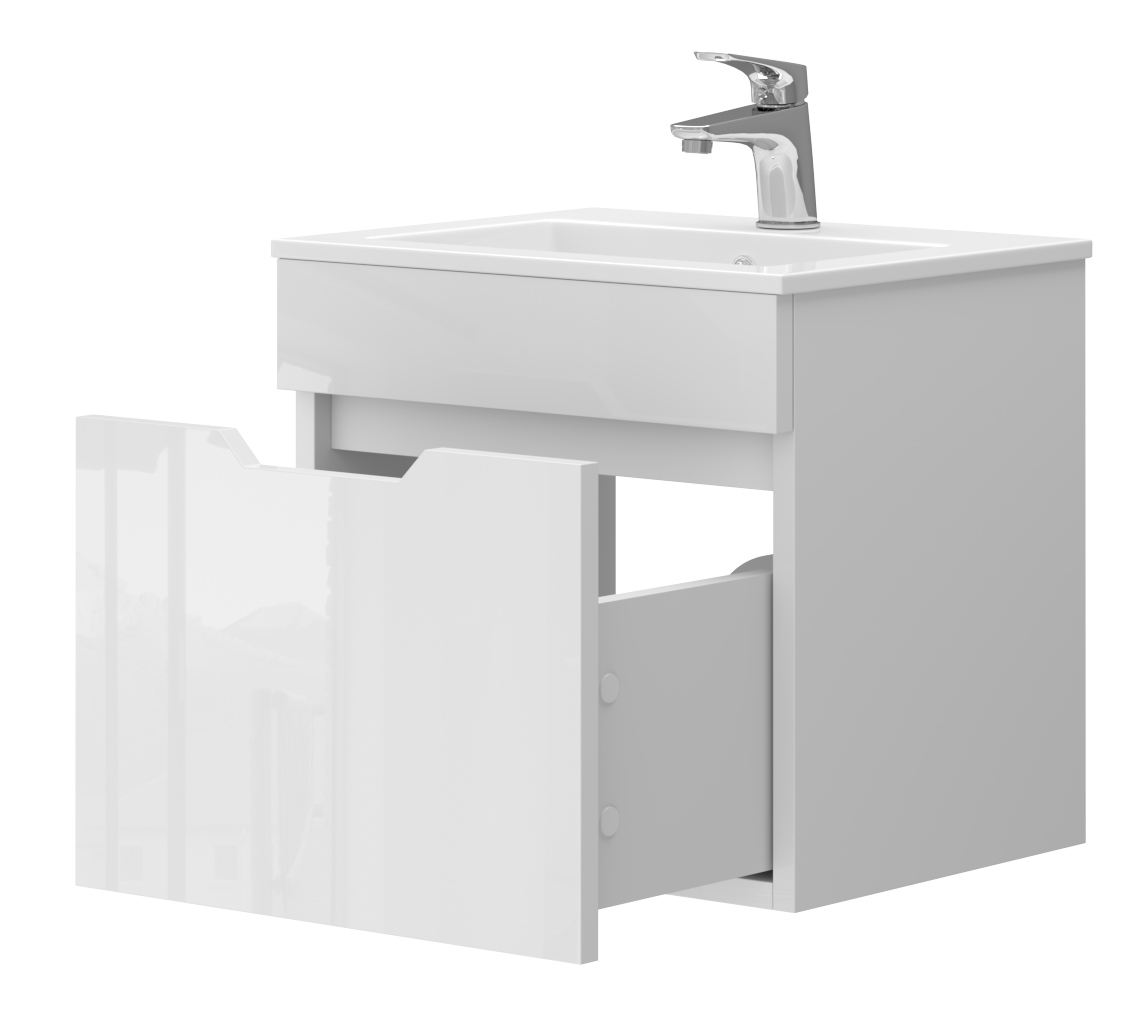 Vienas spintelės stalčius sumontuotas ant slankiojančios sistemos su švelniu uždarymu, daliniu ištraukimu.