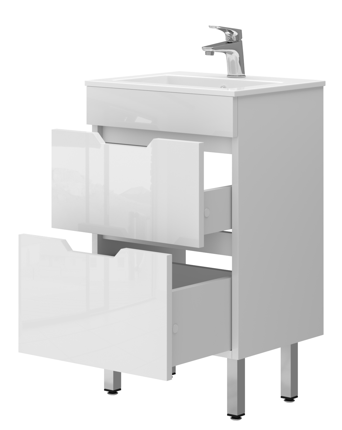 Vienas spintelės stalčius sumontuotas ant slankiojančios sistemos su švelniu uždarymu, daliniu ištraukimu.