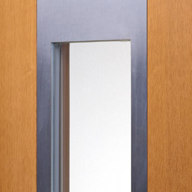Durų varčios medinis pušies karkasas su sustiprintu plieniniu profiliu ir paviršiumi ąžuolo lukštu užtikrina puikų funkcionalumo ir estetikos derinį.