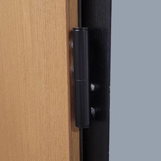 Trijose plokštumose reguliuojami varžtiniai vyriai sidabro spalvos - 4 vnt., vyrių dangteliai juodi (durims su juoda furnitūra/apdaila), arba sidabriniai (durims su sidabro furnitūra/apdaila)
