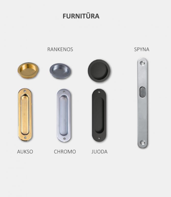 Itin funkcionali konstrukcija gali būti montuojama tiek tiesiai ant sienos, tiek naudojant reguliuojamą apdailą. Sieninę stumdomą sistemą galima komplektuoti vienvėrėms arba dvivėrėms durims. Galimos ovalios ir apvalios rankenos, kurias siūlome kelių spalvų versijomis. Jų montavimui naudojama moderni kablio spyna su raktu, užtikrinanti privatumą ir saugumą. Taip paruoštos stumdomos durys visų pirma yra labai funkcionalios.