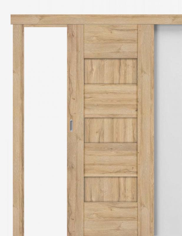 Itin funkcionali konstrukcija gali būti montuojama tiek tiesiai ant sienos, tiek naudojant reguliuojamą apdailą. Sieninę stumdomą sistemą galima komplektuoti vienvėrėms arba dvivėrėms durims. Galimos ovalios ir apvalios rankenos, kurias siūlome kelių spalvų versijomis. Jų montavimui naudojama moderni kablio spyna su raktu, užtikrinanti privatumą ir saugumą. Taip paruoštos stumdomos durys visų pirma yra labai funkcionalios.