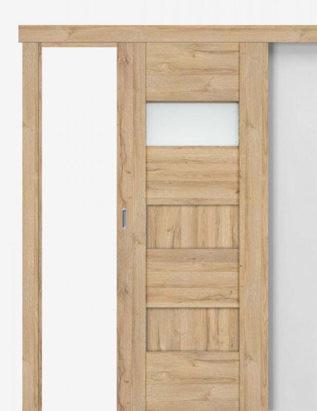 Itin funkcionali konstrukcija gali būti montuojama tiek tiesiai ant sienos, tiek naudojant reguliuojamą apdailą. Sieninę stumdomą sistemą galima komplektuoti vienvėrėms arba dvivėrėms durims. Galimos ovalios ir apvalios rankenos, kurias siūlome kelių spalvų versijomis. Jų montavimui naudojama moderni kablio spyna su raktu, užtikrinanti privatumą ir saugumą. Taip paruoštos stumdomos durys visų pirma yra labai funkcionalios.