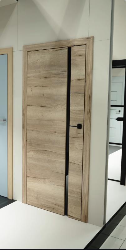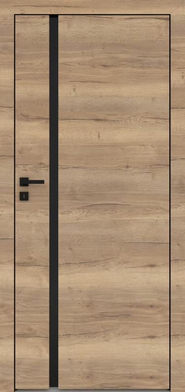 Durų varčios karkasas pagamintas iš medžio pagrindo plokštės, sutvirtintos fanera, užpildas perforuota medžio drožlių plokštė. Durų varčios paviršius padengtas laminuota, sinchronine 3 mm storio EGGER plokšte. Stiklas DECORMAT grūdintas laminuotas, arba Juodas grūdintas laminuotas. Stiklas 8 cm pločio.